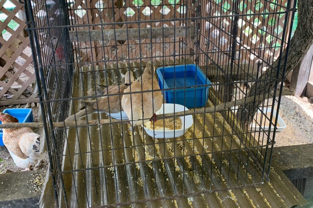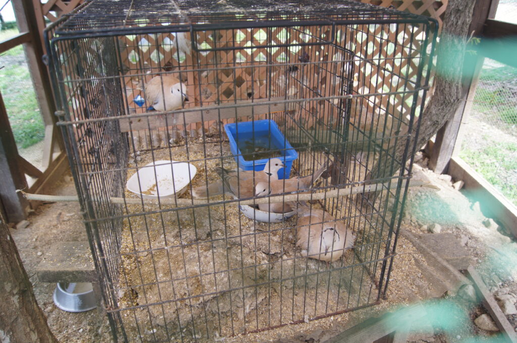 残渣が積もり異臭漂うシラコバトのケージ。